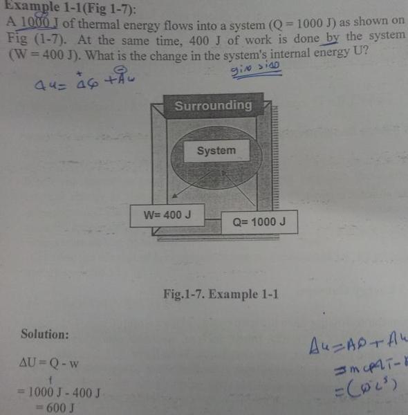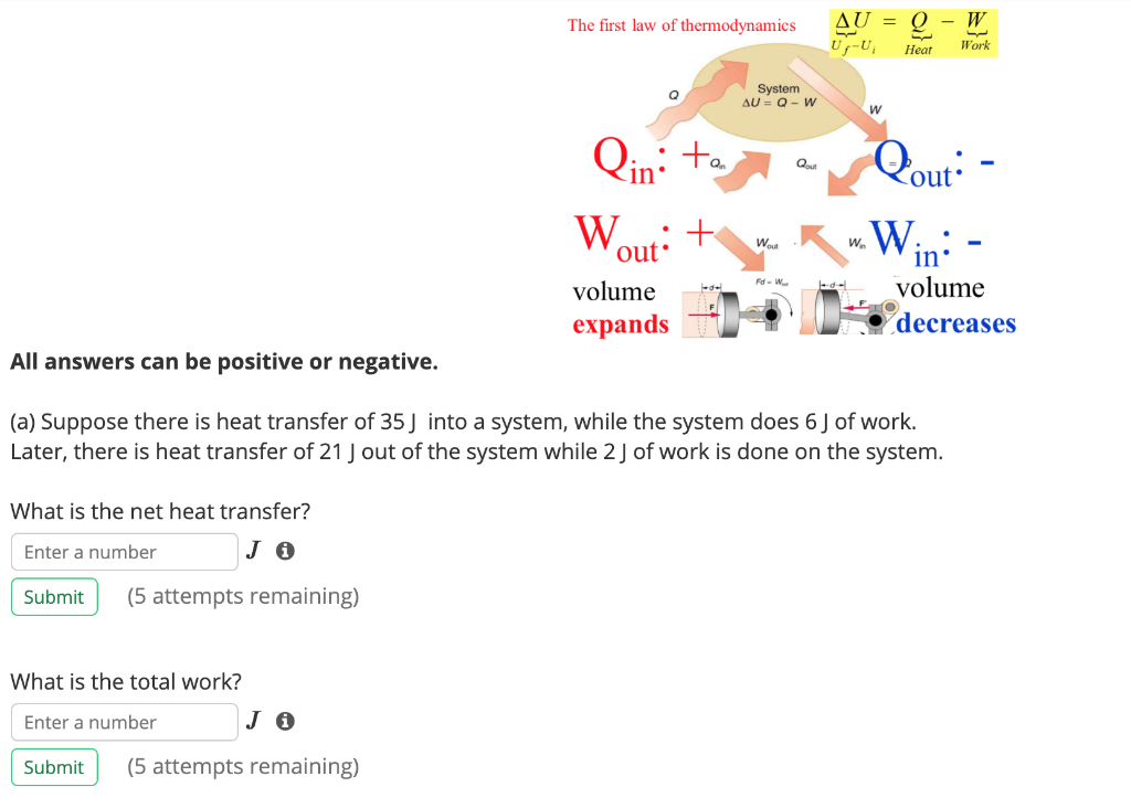Work done by system negative. If work is applied to the system d W term becomes negative making two negatives positive which is identical to equation 1 and heat added to the system is still positive here. Q heat J WWork j if Q is positive then there is a net heat transfer into the system.