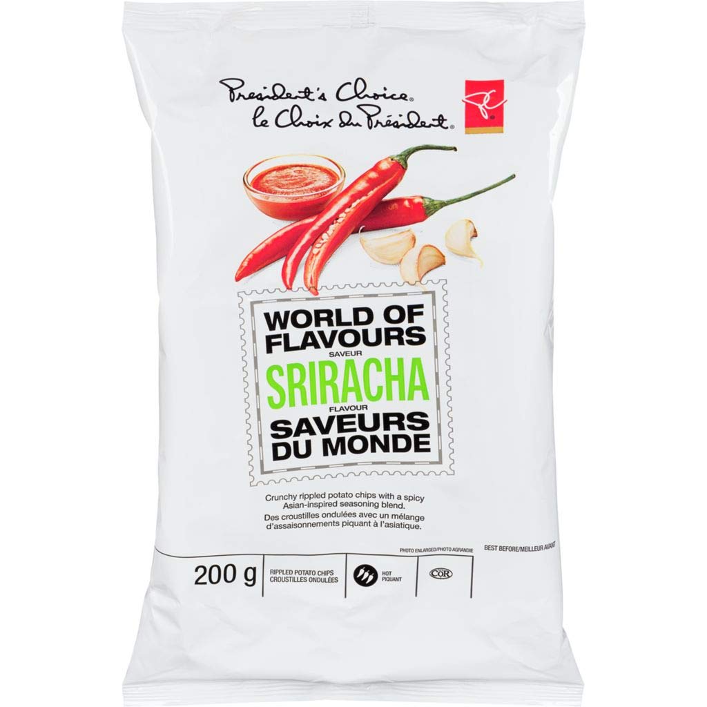 Local street favs to national brands. These crunchy rippled chips recreate the bold spicy flavour of Sriracha hot sauce. As a signature Canadian brand you cannot beat the variety of flavors in Presidents Choice chips.