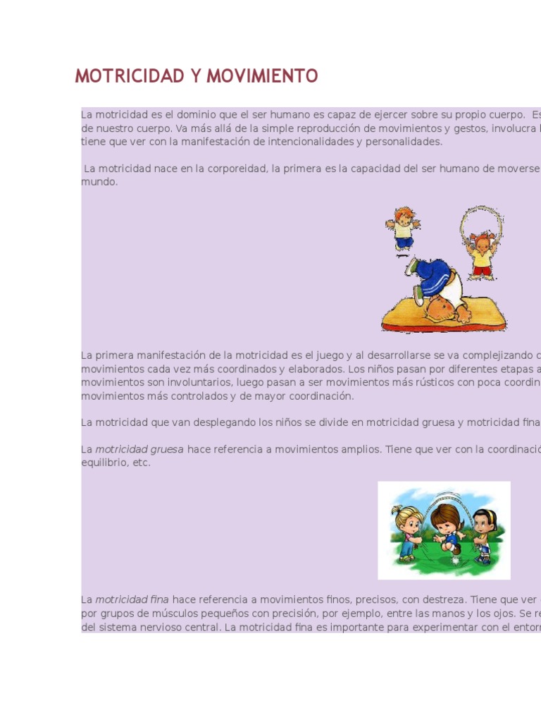 La motricidad es la facultad que se desarrolla por medio del sistema nervioso central músculos y articulaciones que permiten perfeccionar los movimientos del cuerpo en.